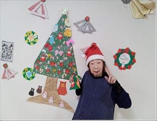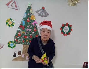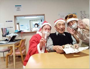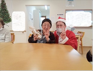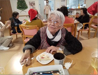 「ケーキなんて久しぶりね、美味しい!」と好評でした。サンタさんとの記念撮影も…♪