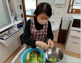 手作り昼食は入居者様にお手伝いしていただきながらシチューを作りました。さすがの手際でした。