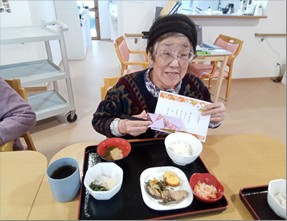 年末年始は紅白を観たり、トランプや縫物をされたりと、皆様それぞれ思い思いに、穏やかに過ごされていたようです。大晦日の夕食にはお蕎麦を、元旦にはお節を召し上がられ、季節を感じていただけたのではないでしょうか。