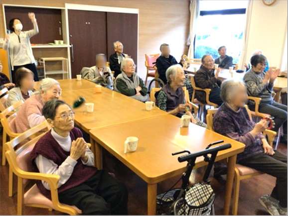 職員部門では、扇子を振り回して踊る者あり、難曲を高らかに歌い上げる者あり、英語のラップパートをノリノリで歌う者あり…と、入居者様がご存じないであろう曲でも皆様手を叩いて大喜びの大興奮🙌