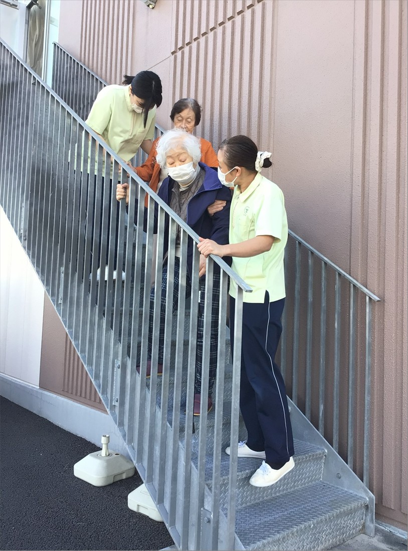 ご入居者様から「実際に火災や避難を行う事態が来たら怖いね。」とお言葉をいただき、職員もとても緊張が走りました。