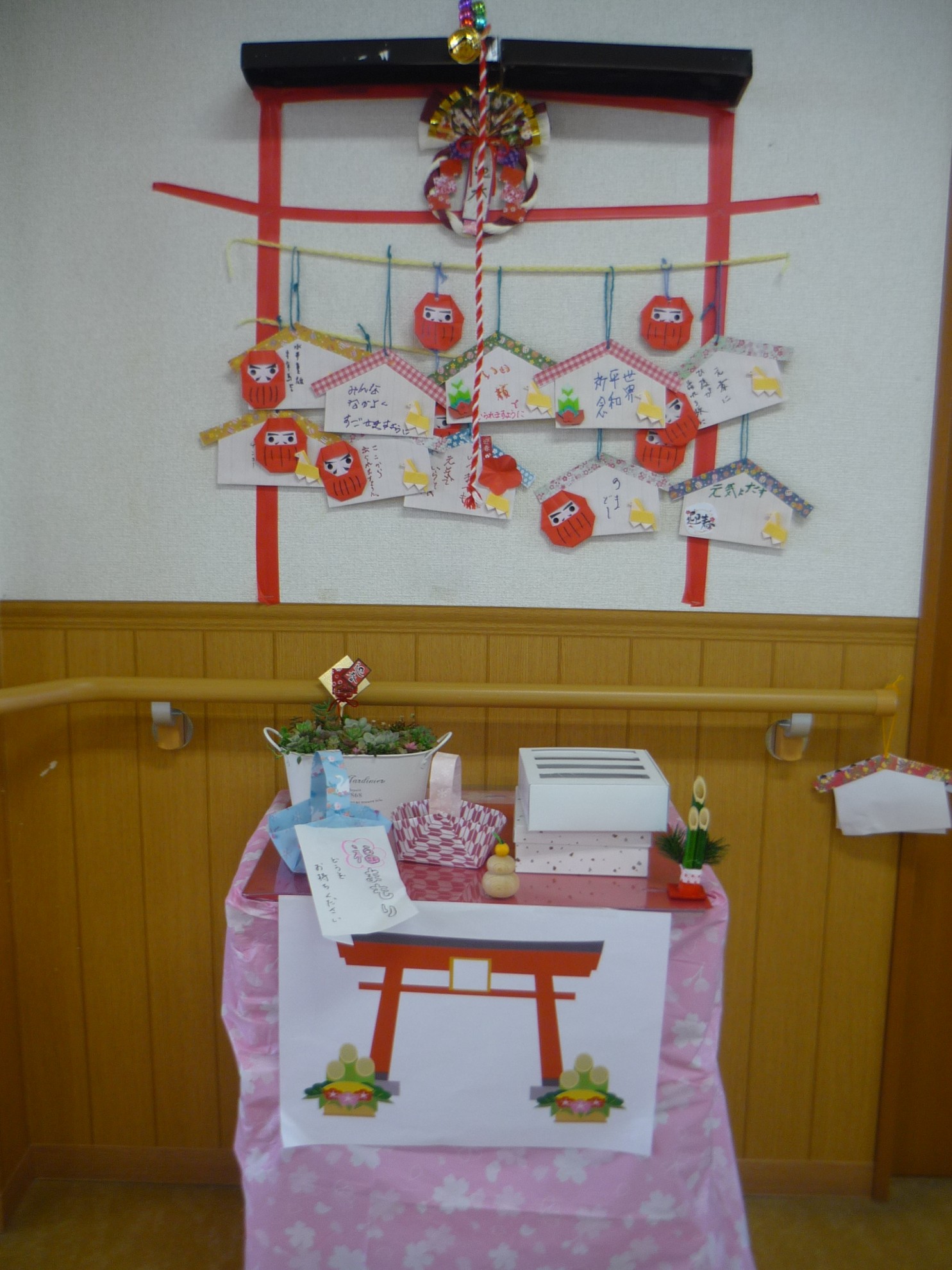 4階にハートフル神社があり、入居者様は絵馬を作り飾っています。