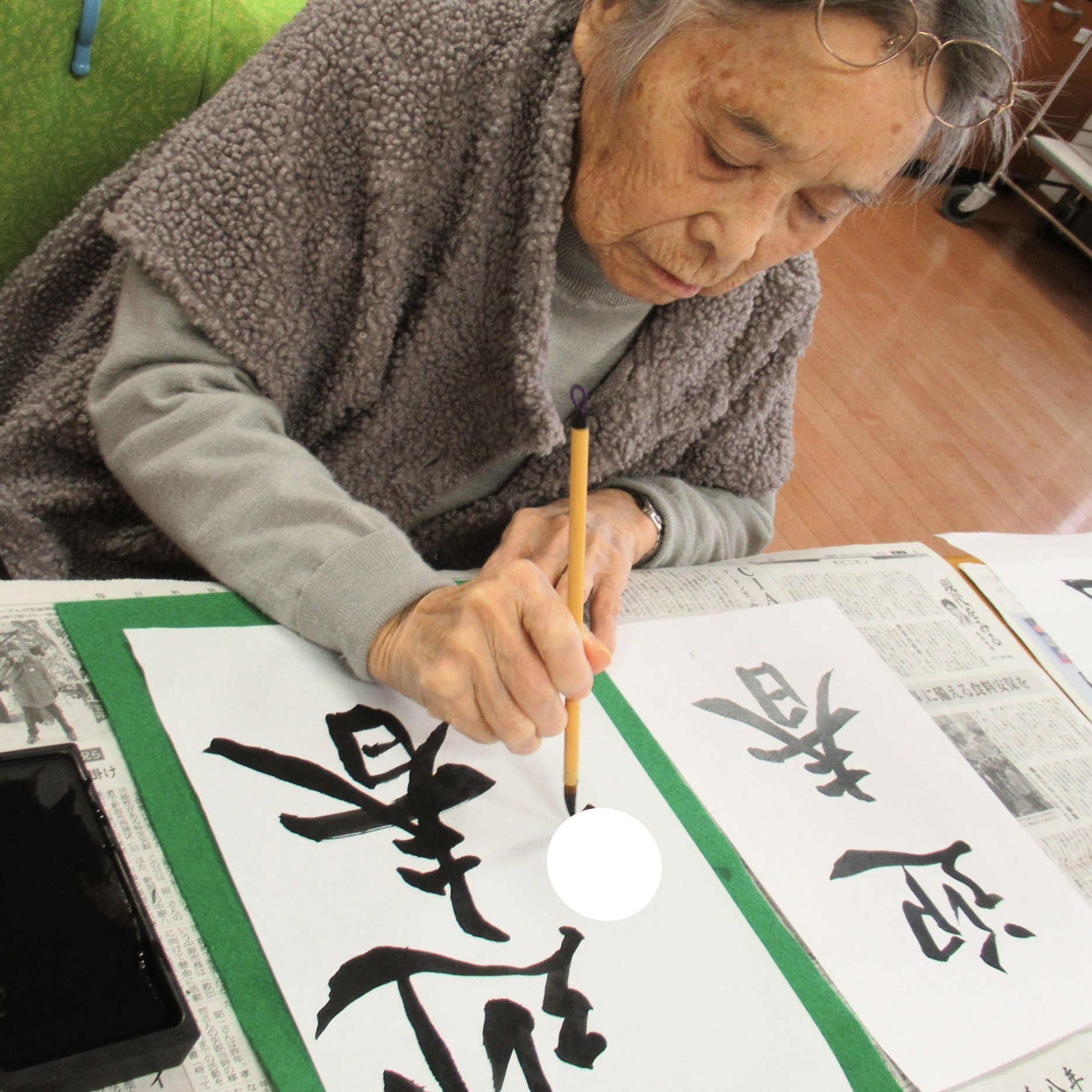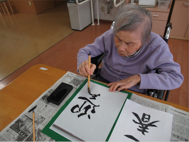 久しぶりの筆を持つ手に緊張もみられましたが、職員がびっくりするほどの腕前でした。