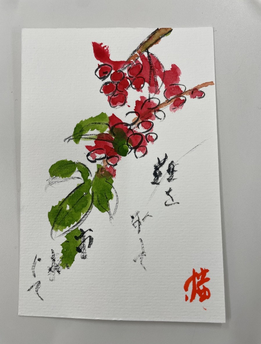 縁起物の南天の絵手紙を飾って福を呼び込みましょう。