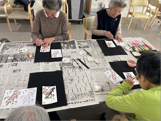 1月16日(金)は講師の先生のもと、1Fフロアにて絵手紙教室が開催されました。