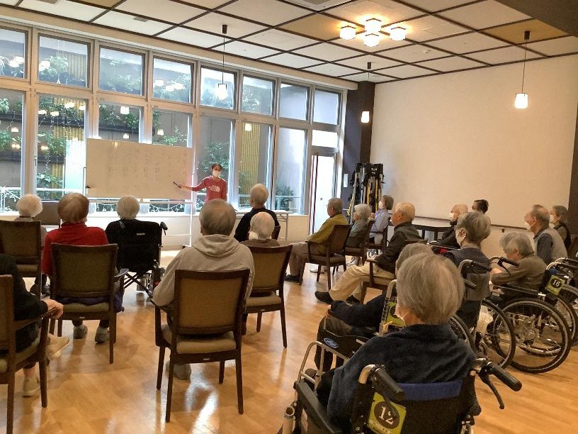 機能訓練指導員のアクティビティでは、雑学や脳トレ、全身を使う体操を無理なく、楽しく、誰でも参加できる内容となっております。