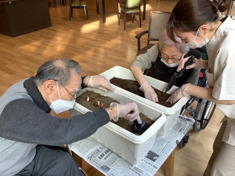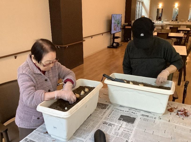 土いじりは、ストレス解消やリラックス効果、免疫力の向上も期待できるそうです!もちろん手先を使う運動の効果もあります。まだまだ寒い日が続きます。