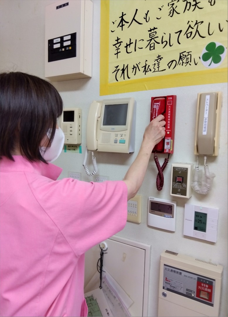普段から火災発生時の連絡手段及び、消火器の配置の把握、利用者様を最短でかつ安全に誘導できるようなルートを確保することが大切になります。