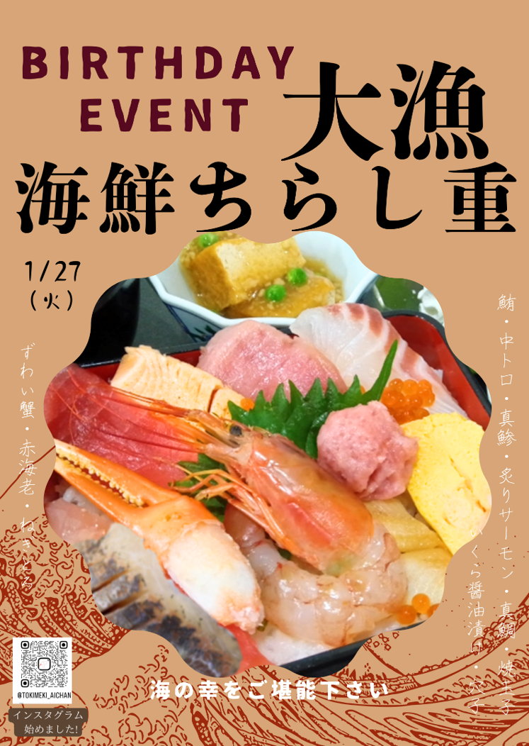 今月は1月27日(火) 昼食に『大漁海鮮ちらし重』が登場いたします!