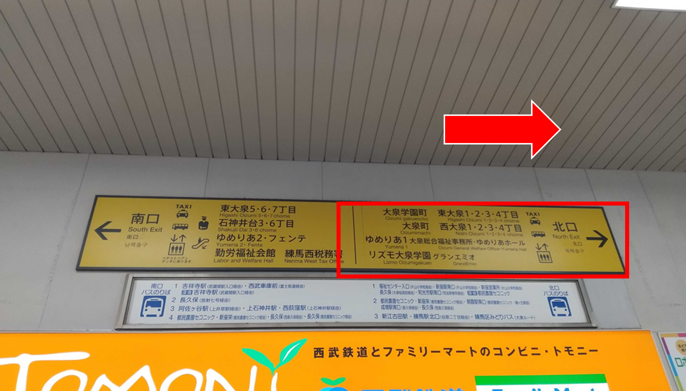 ①「大泉学園駅」の駅に到着しましたら、【北出口】へ向かいます
