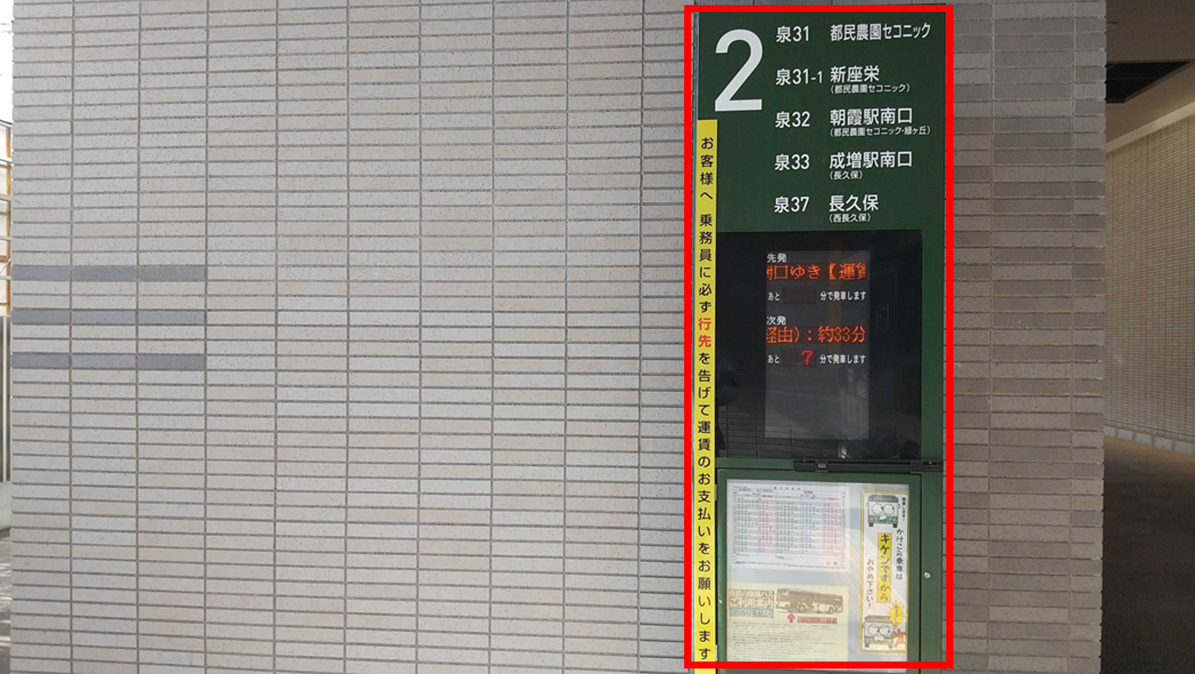⑥【大泉学園北口】より【2番口】のバスに乗車します。※2番口乗車はすべて「大泉風致地区」に到着します