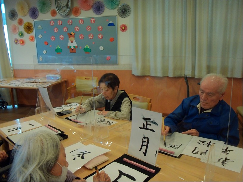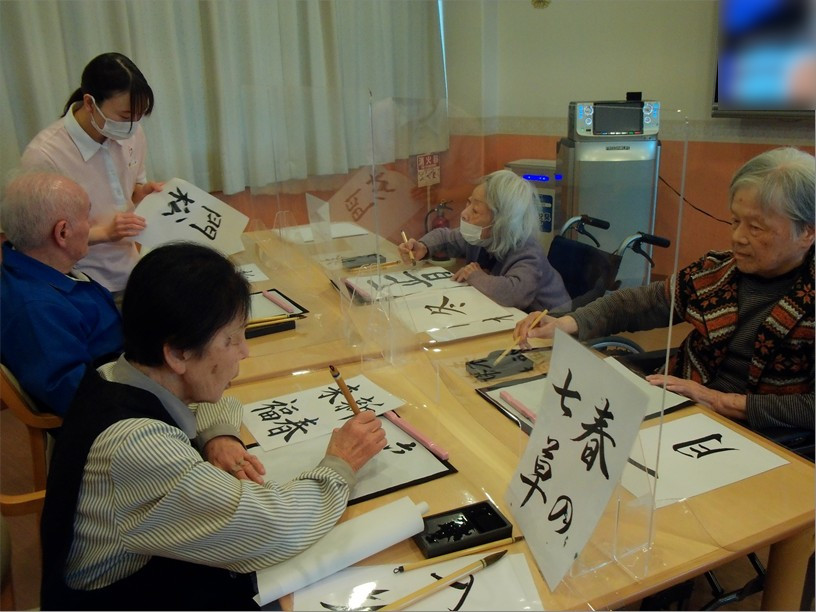 住宅型有料老人ホーム『ハートフルヴィラ出来島』では、1月23日に「書初め会」を開催しました。