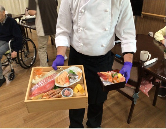実演では海鮮ちらし重の盛り付けを行いました。 皆様から「おいしそう」「早く食べたい」と声があがっていました!