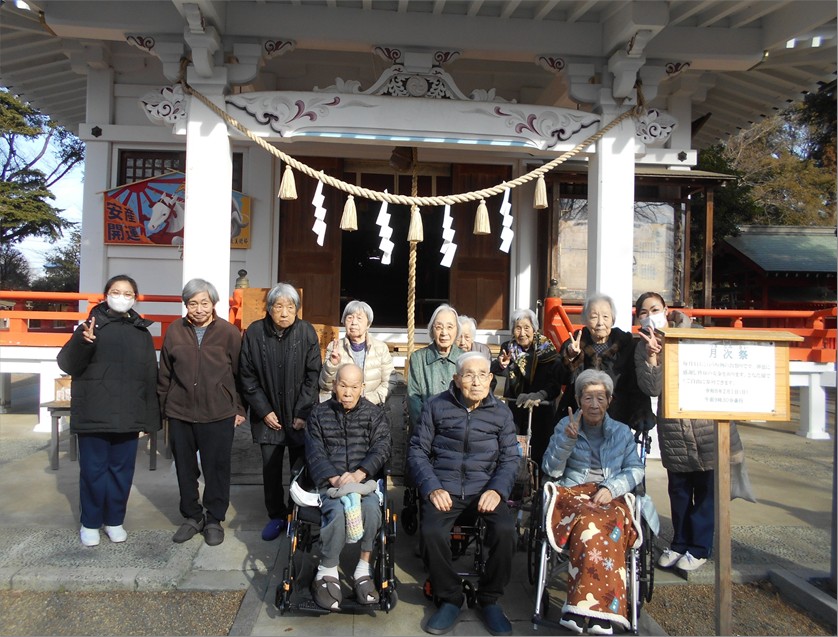 初詣レクをしました。お天気も良く参拝日よりでした☆ 記念撮影もしましたよ☆