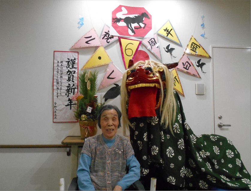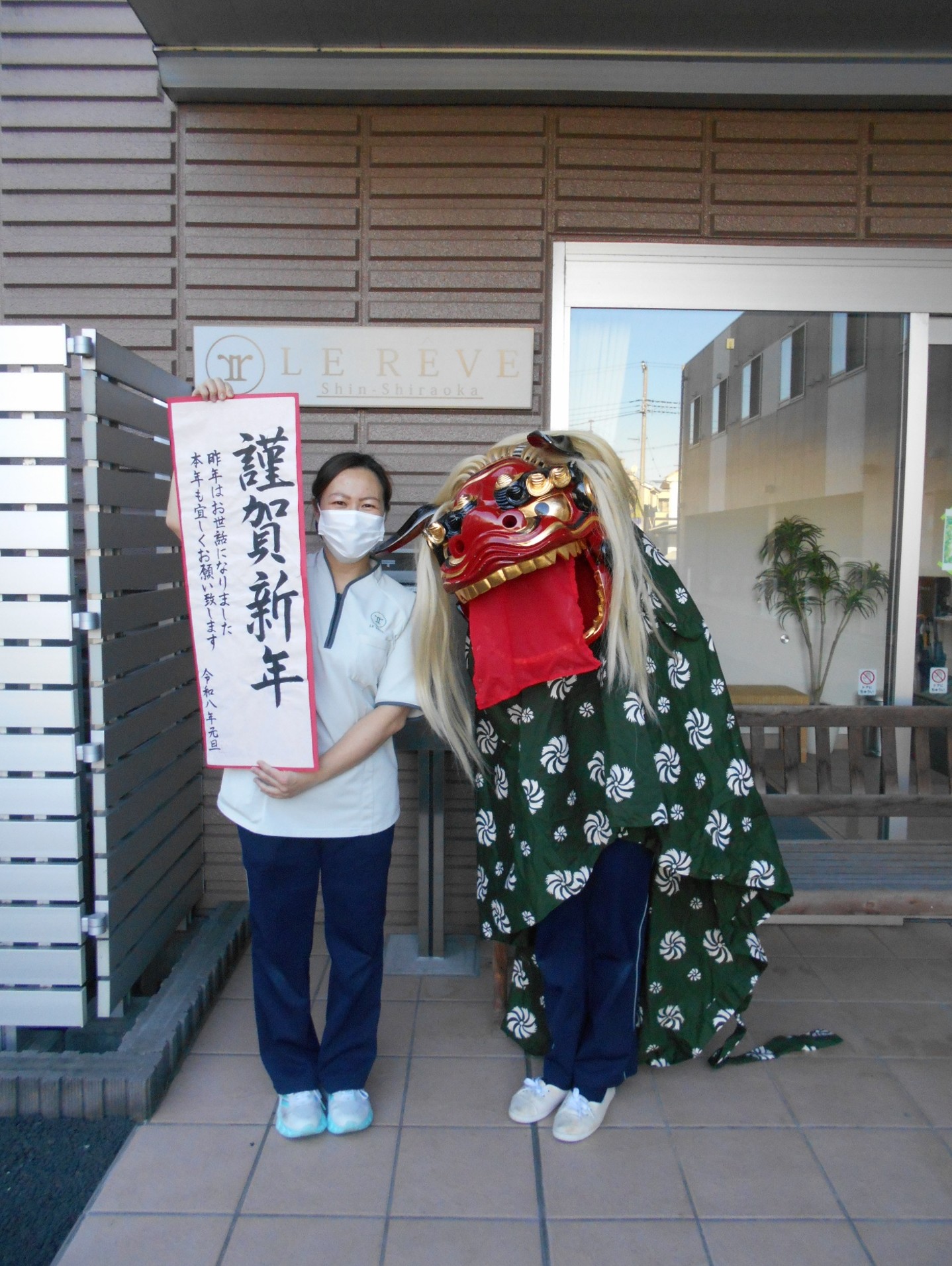 新白岡では獅子舞をお迎えし、今年一年の厄除けを行い、無病息災などのご利益をあやかりました。