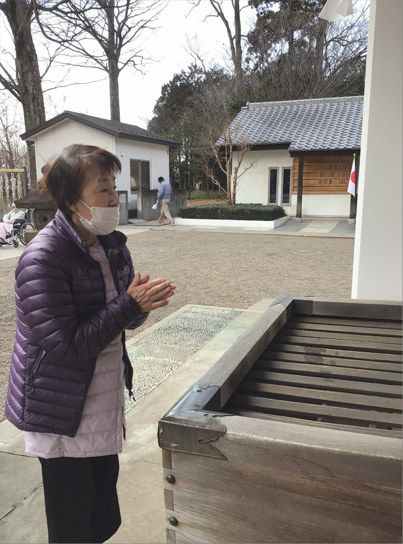 初詣レクをしました。お天気も良く参拝日よりでした☆ 記念撮影もしましたよ☆