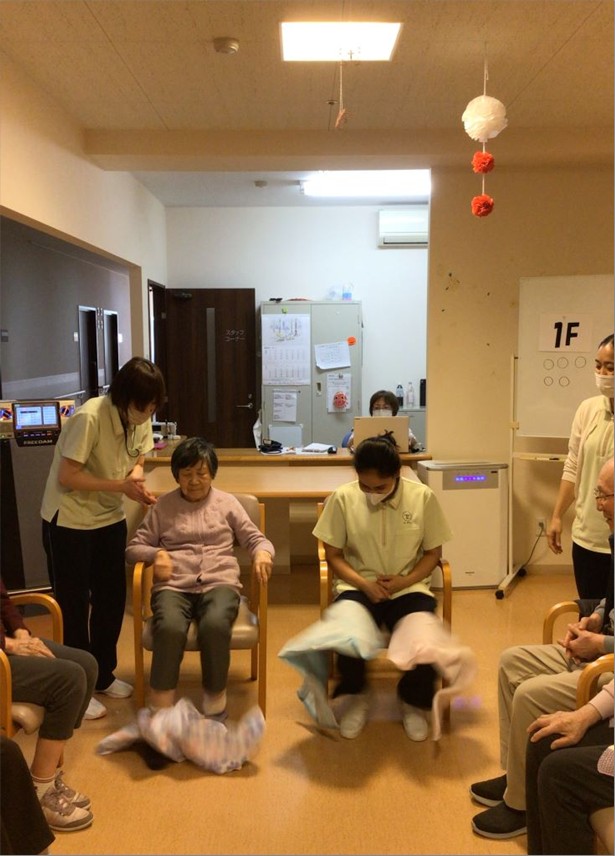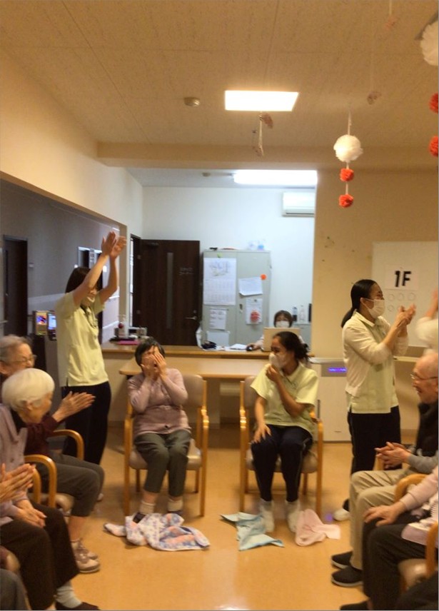 レクリエーション『タオル落としゲーム』の様子をお届けします🤗