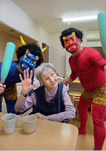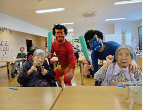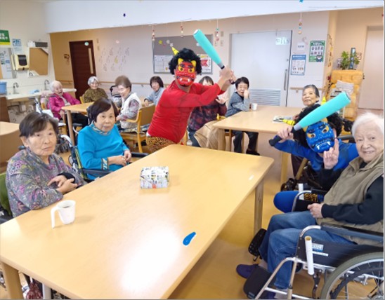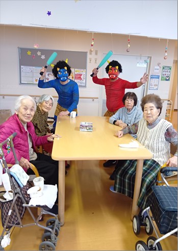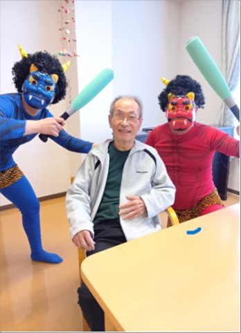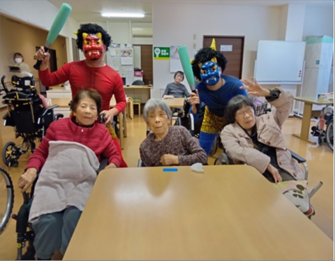 『ル・レーヴ羽生古島』に鬼が来ましたので、皆様で鬼退治をしました。