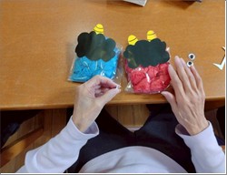 袋にお花紙を優しく丸めて詰め詰め。お顔を付けて完成です(*^▽^*)