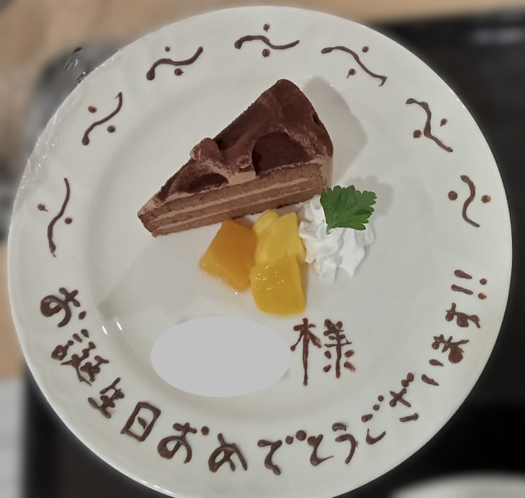 今月バースデーの方にはデコレーションされたメッセージプレートとともにご提供させていただきました♪