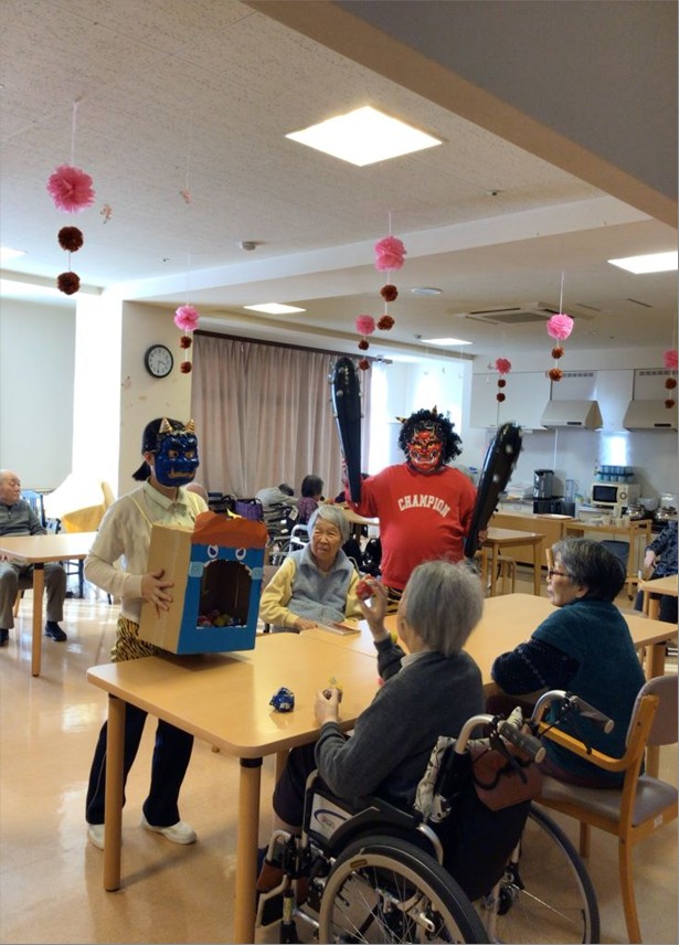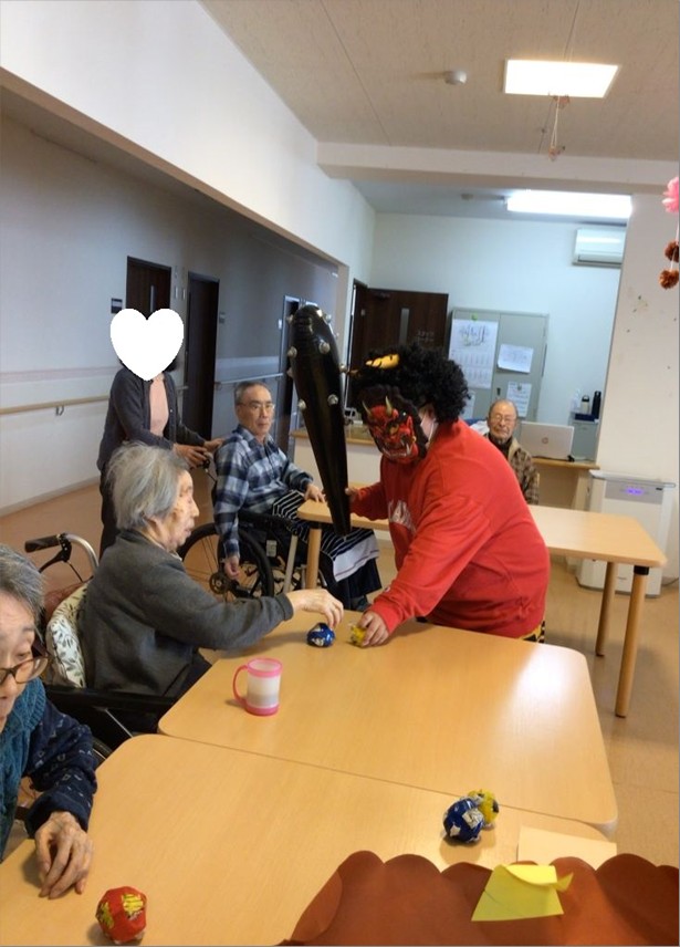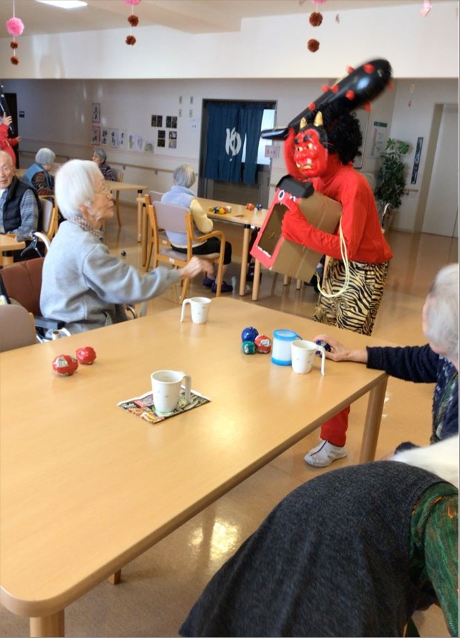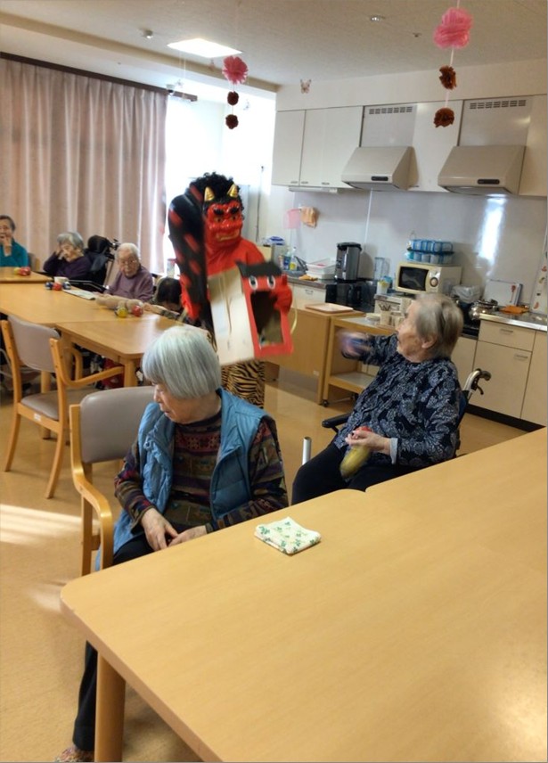 入居者様には豆の代わりに新聞紙を丸めたボールを投げて鬼退治をしていただきました!