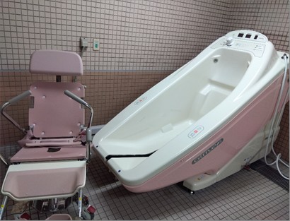 お身体の状態が変化しても、ゆったりと入浴していただけるよう、チェア浴・ストレッチャー浴を準備しています。
