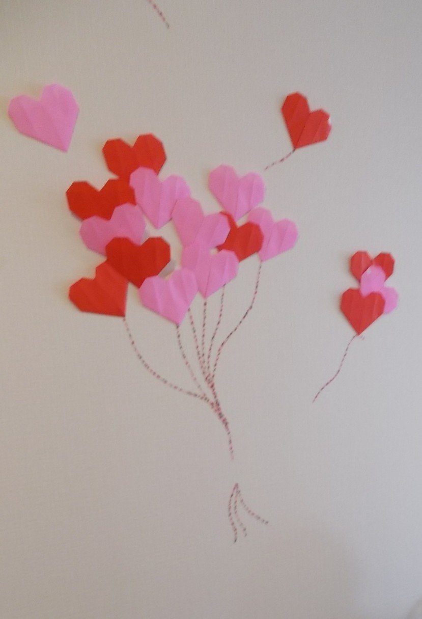 『スミール石山』では、職員同士協力してハート💕の壁飾りを作成しました!