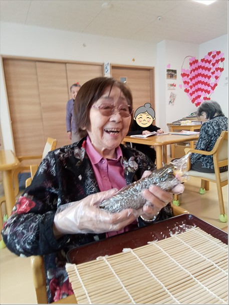 まずは手始めに、入居者様の手をお借りして恵方巻を作りました!