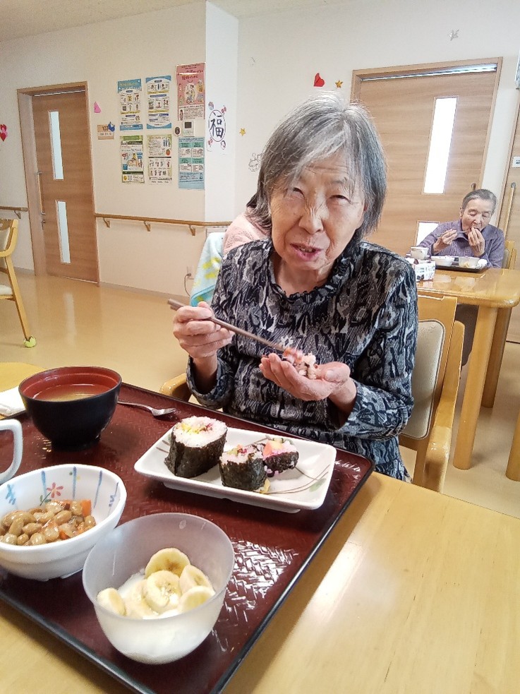 入居者様と職員で協力して作った恵方巻は、昼食に提供させて頂きました♪