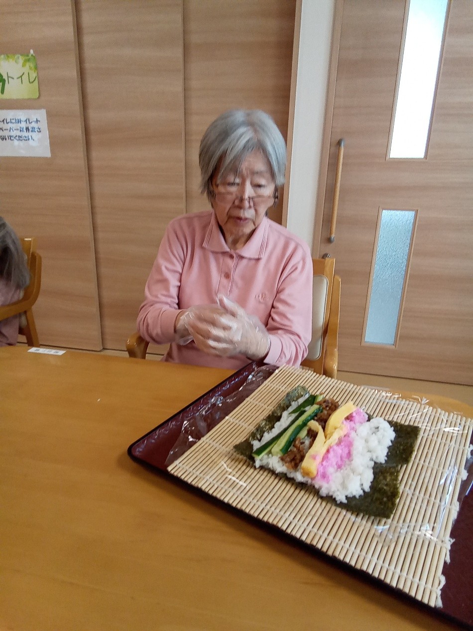 まずは手始めに、入居者様の手をお借りして恵方巻を作りました!