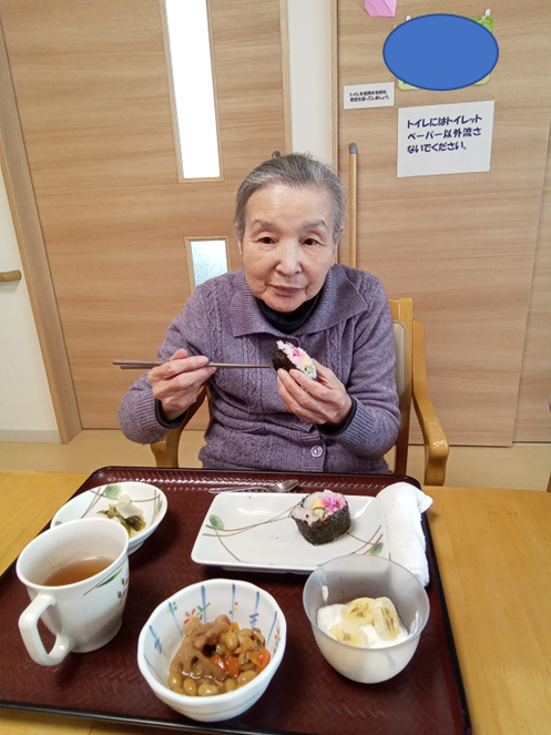 入居者様と職員で協力して作った恵方巻は、昼食に提供させて頂きました♪