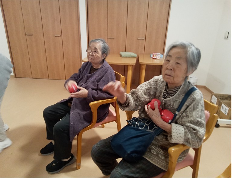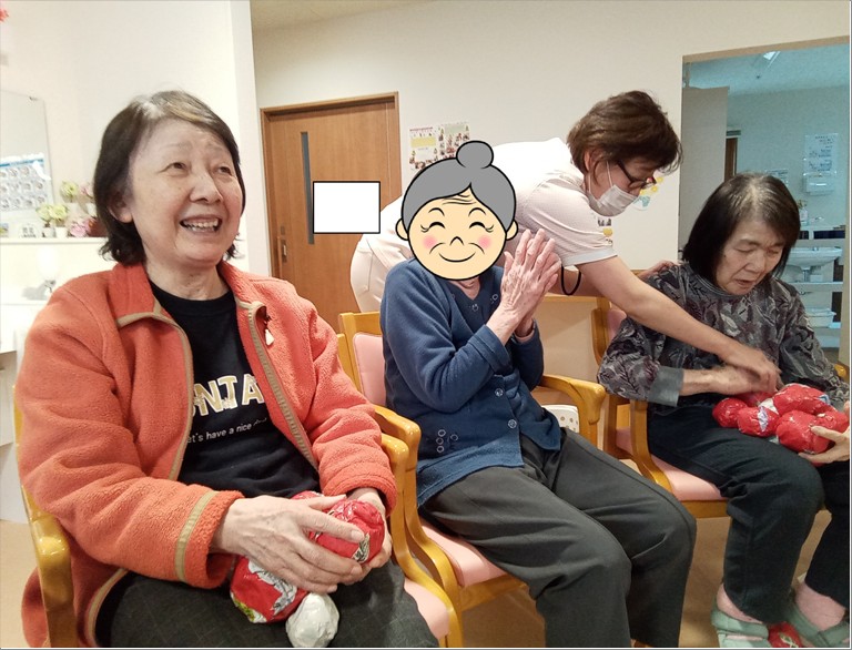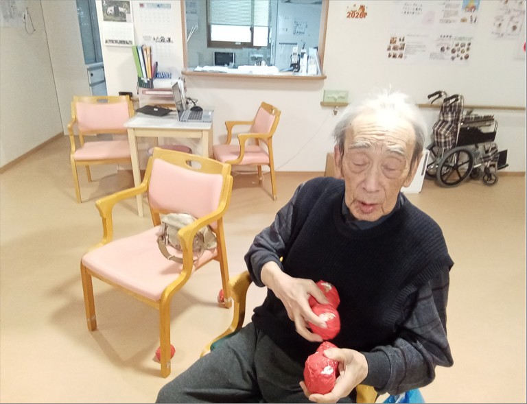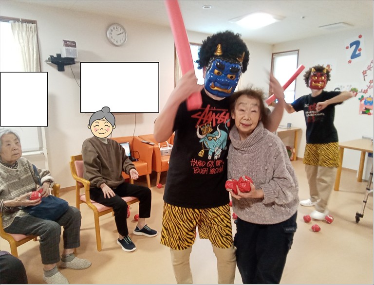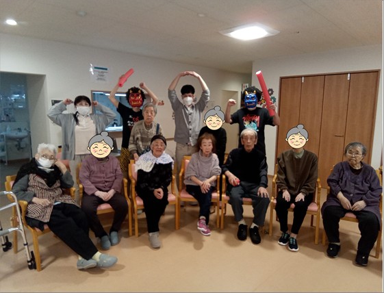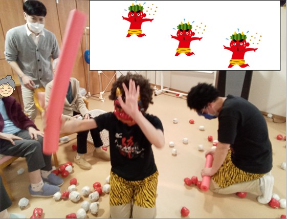 入居者様は豆に見立てた紙球を鬼にぶつけ、「鬼は外!」「福は内!」と厄を払いました👹
