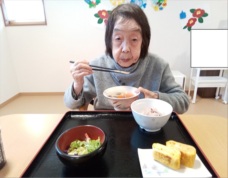また、手作り昼食では、赤飯と大きな玉子焼きを中心としたメニューを楽しんでいただきました!