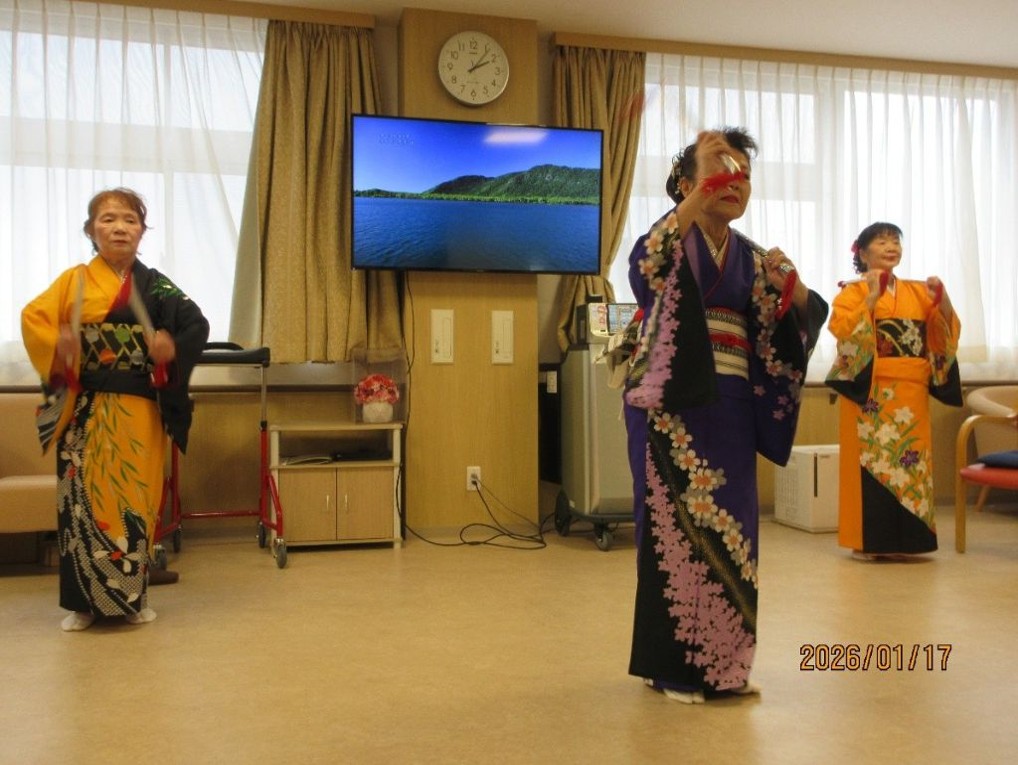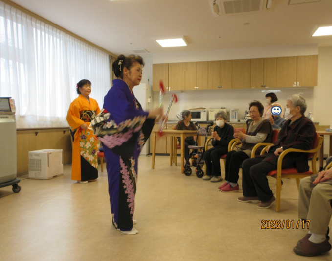 まずはボランティアの皆様が踊りを披露くださいました。優雅な舞に入居者様も見入っておられました。
