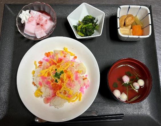 様々な雛飾りが出来ました♪ 昼食は”ちらし寿司”(≧▽≦)
