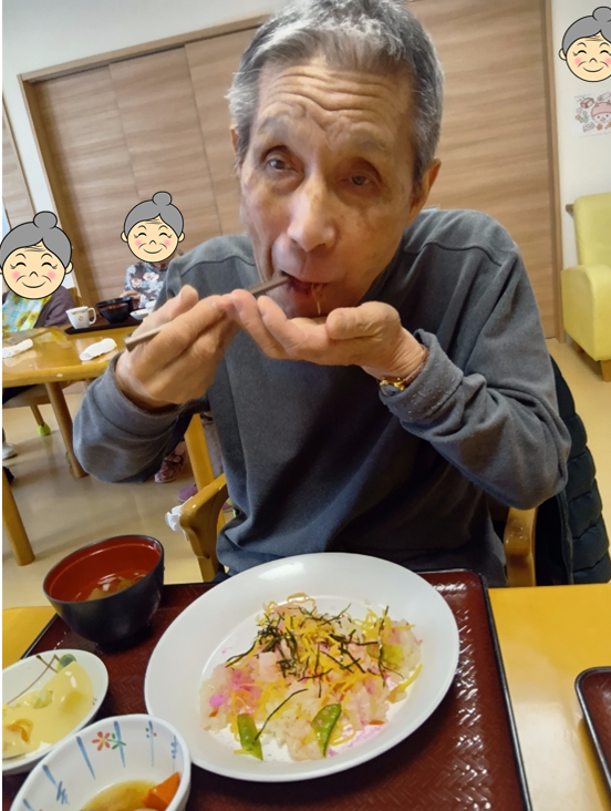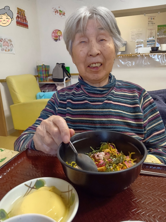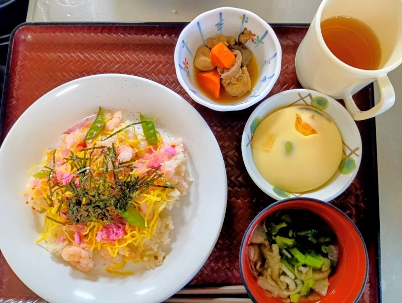 ちらし寿司、茶碗蒸し、筑前煮、すまし汁を皆様美味しそうに召し上がっておられました!