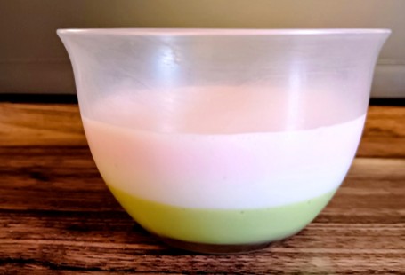 抹茶味・ヨーグルト味・いちご味のババロアを重ねて作りました。結構時間の掛かる逸品です…!
