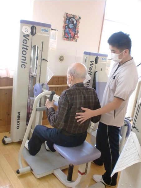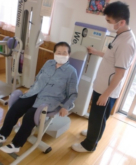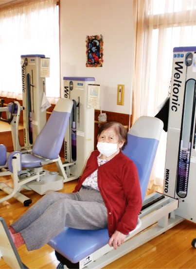 機能訓練専用のトレーニングマシンで、介護予防に適した本格的な訓練を実施している様子をご紹介します。