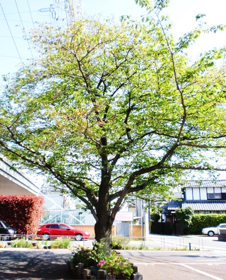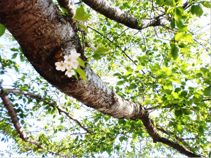 桜の木は新緑になっており、桜もまだ散っていない部分が残っていました♡