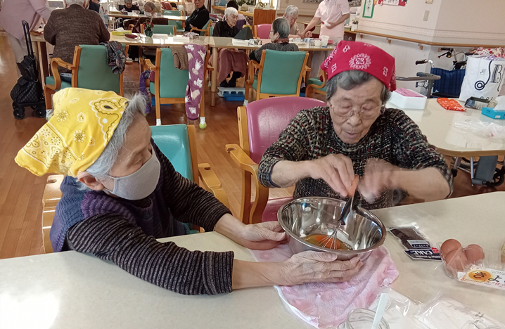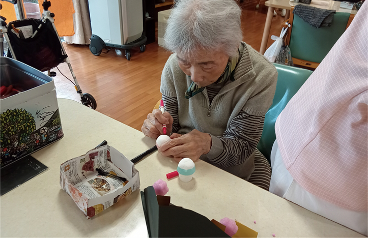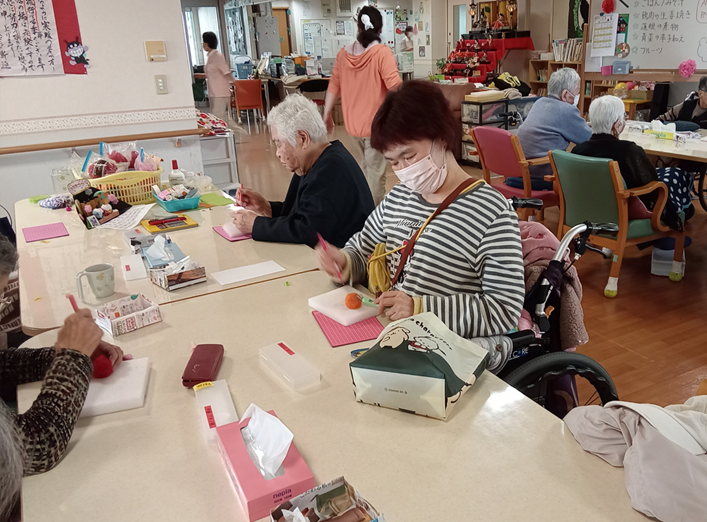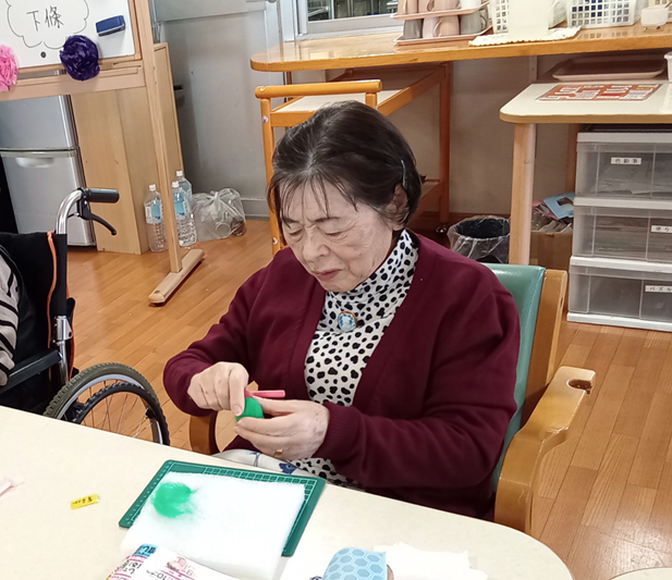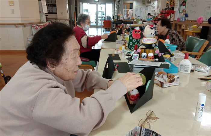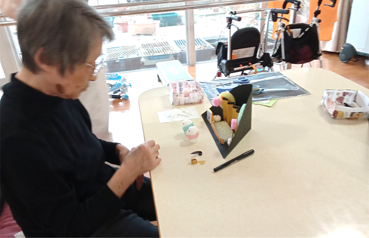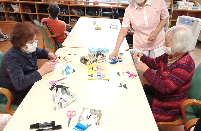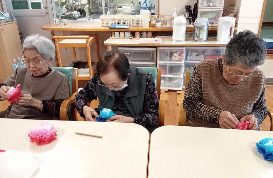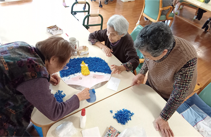 最近の新通、手作業などの作業レクで手をたくさん動かしていただきました。壁面製作では皆さんで一つの作品を作ります。