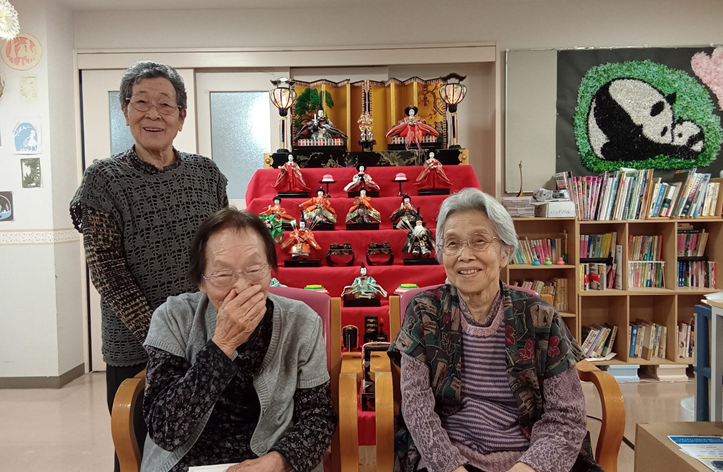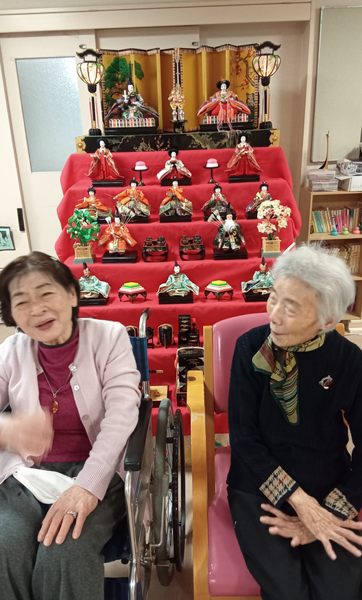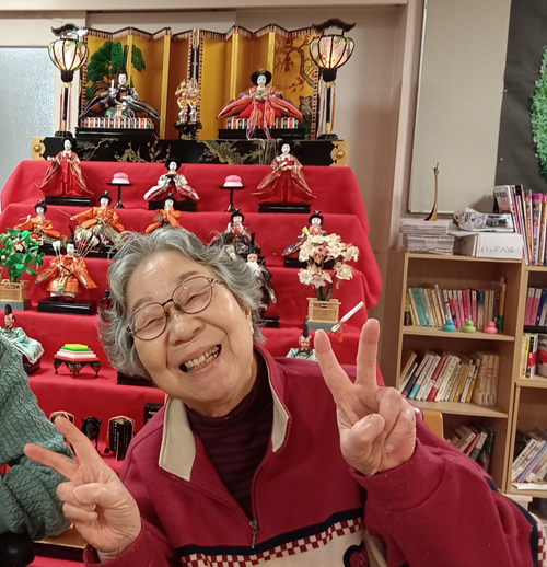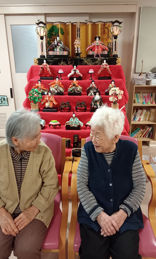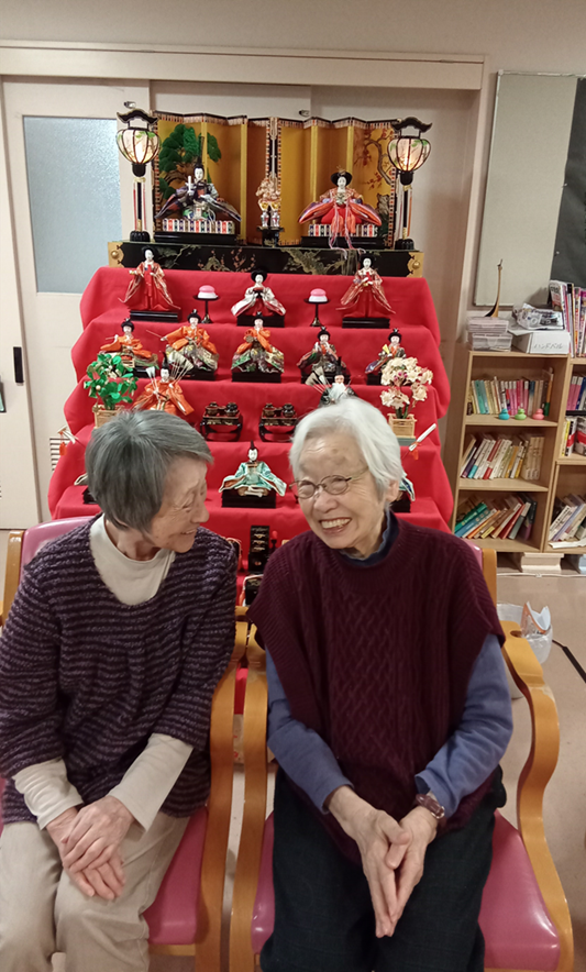 3月といえばひな祭り。ひな壇の前で記念撮影も行いました。顔を見合わせた笑顔のお写真がたくさん撮れました。