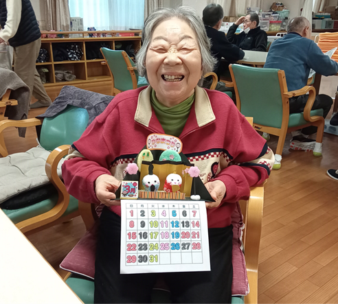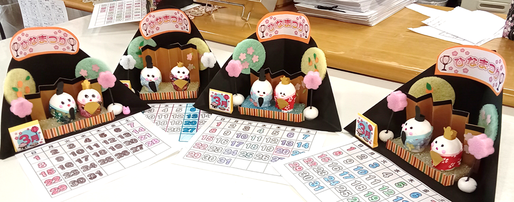 3月のカレンダーでは、紙粘土を使っておひな様を作っていただきました。手のひらできれいな丸を作っていただくのですが、これがなかなか難しかったりします。