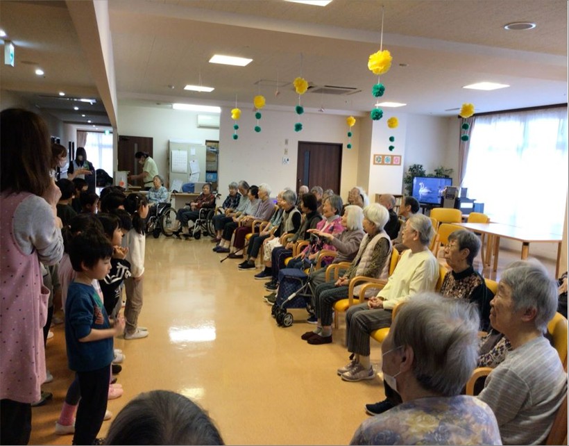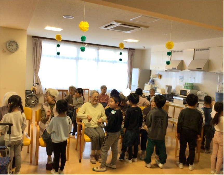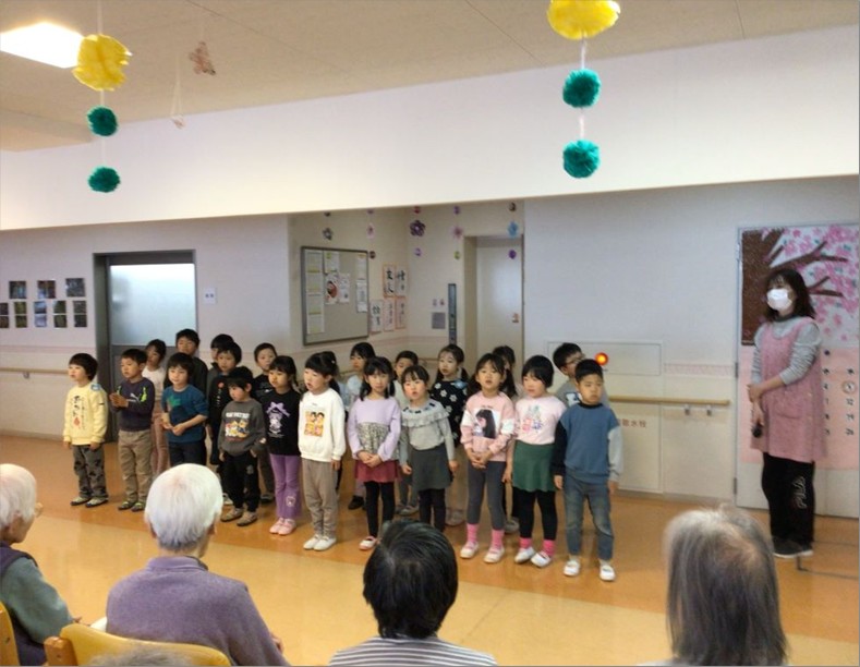近所の『風の子保育園』の子供たちが『ル・レーヴ狭山さくら館』に卒園挨拶に来てくれました🥰