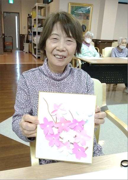 今回のアートセラピーは、折り紙を使って桜を咲かせます。