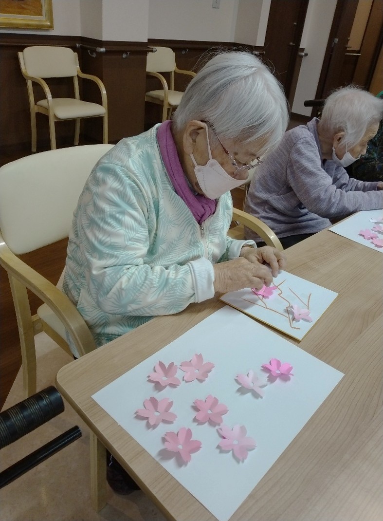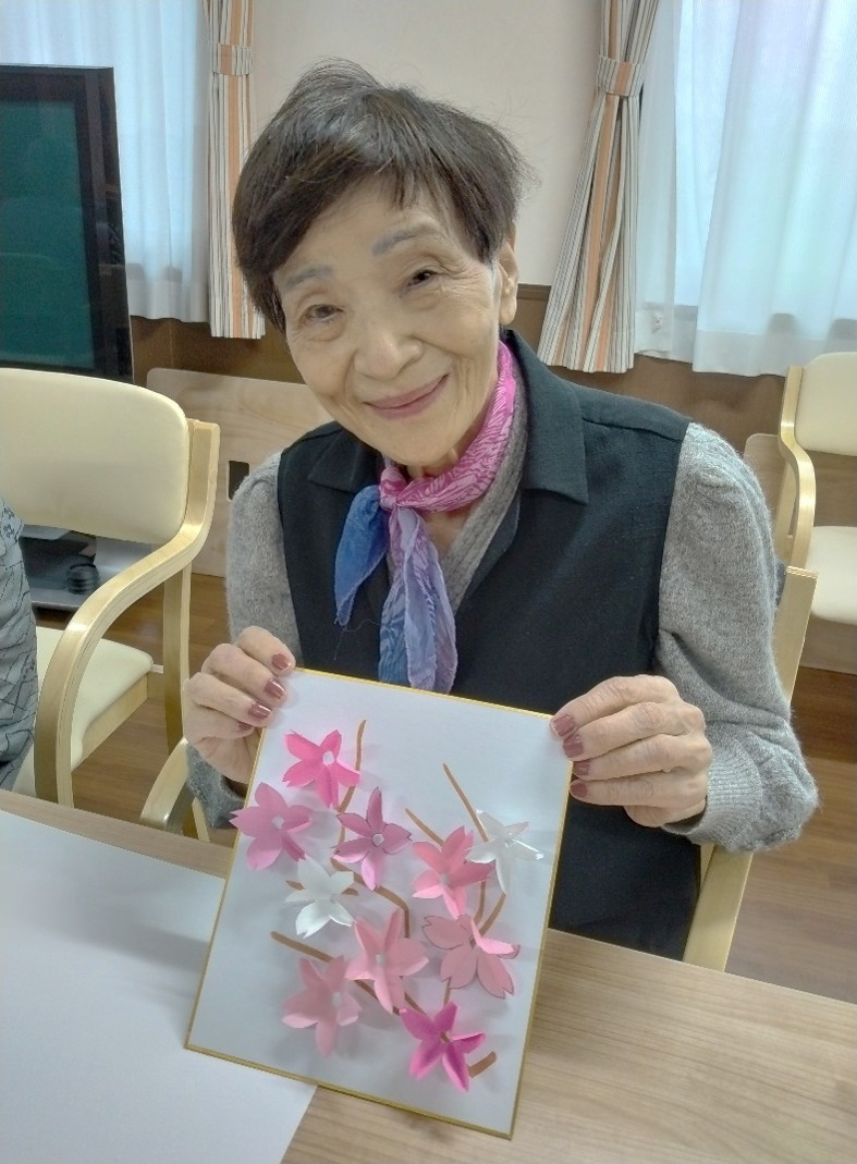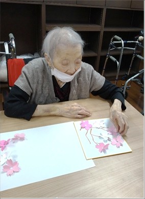 今回のアートセラピーは、折り紙を使って桜を咲かせます。