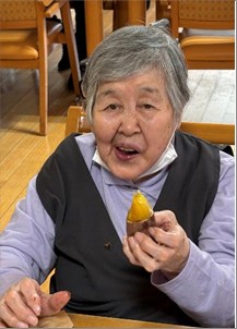 体操をしてから行こうとのお話でしたが、もう待ちきれず…気持ちは焼き芋屋さんへ一人ひとり受け取りに行き、満足な表情(#^.^#)