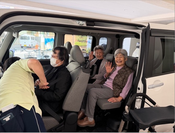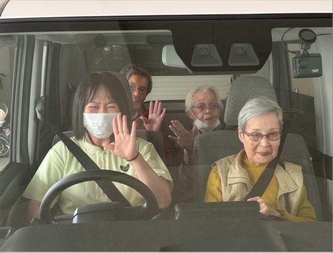 ご入居者様順番に『お花見ドライブ』にご案内しました。