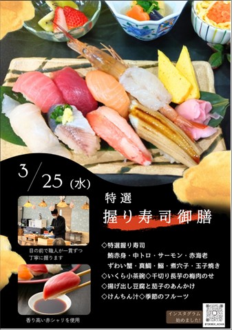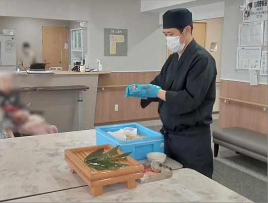 今月は板前さんによる、にぎりずしの実演が行われました。