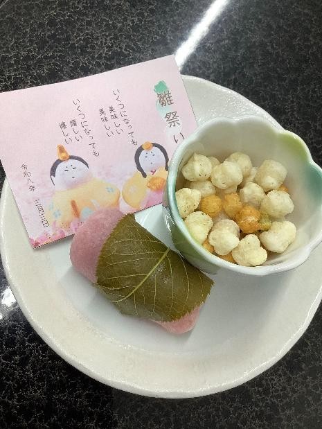 おやつには桜餅とあられを頂きました♪