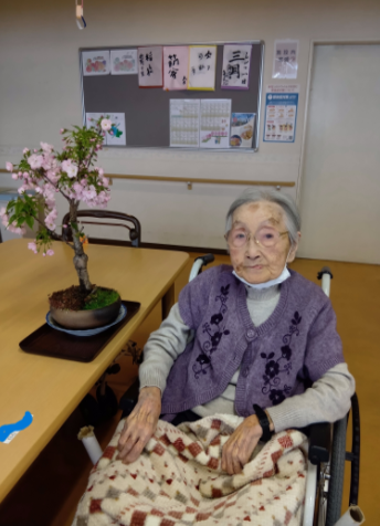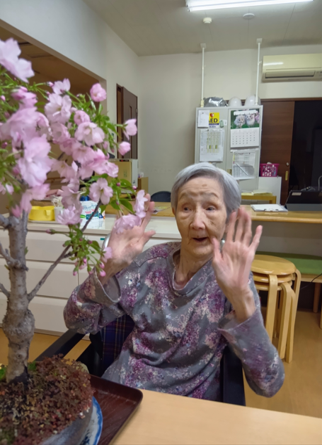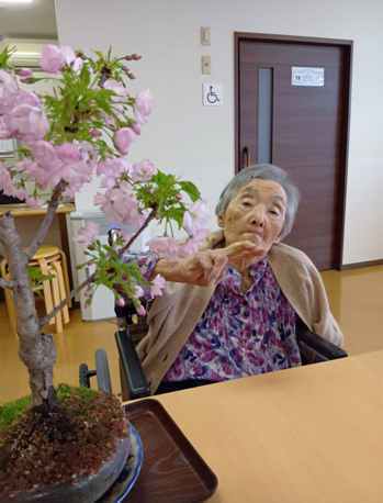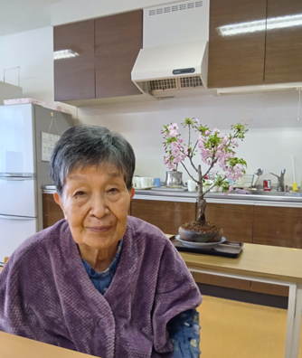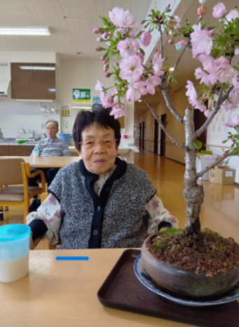 困っていたところに、ご入居者様のご家族様がなんと桜の盆栽を持って来てくださりました。